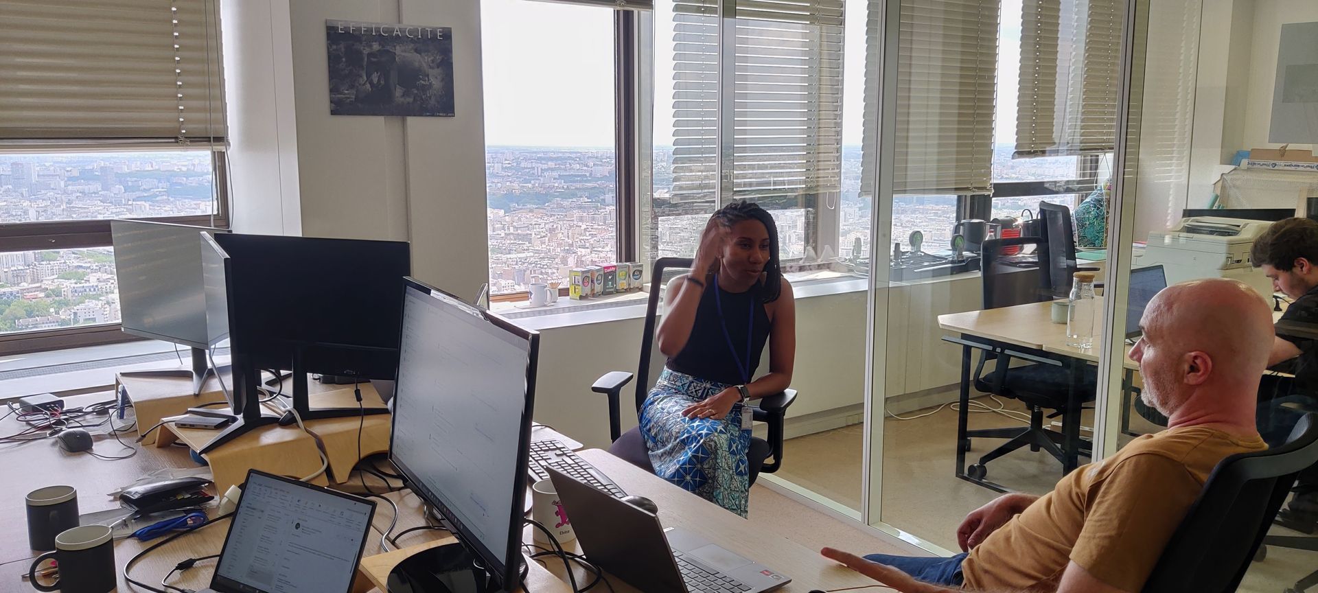 On y retrouve le pôle administratif-RH et la "Software factory" : en mode plateau, les équipes travaillent sur les projets clients et sont composées d'Architectes techniques, de Lead Tech, de Directeurs de projets, de Chefs de projets et de Développeurs fullstack.